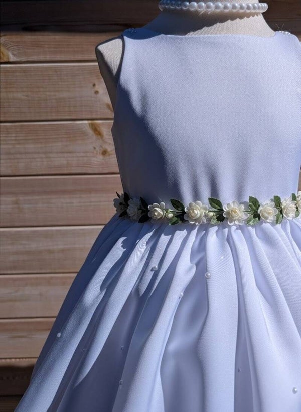 Accessoires possibles : Choisissez une touche plus romantique en remplaçant la ceinture brillante par de délicates fausses fleurs, pour apporter une ambiance plus douce et romantique.
