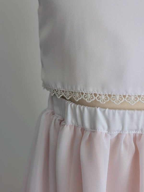 Cet ensemble, composé du top Betty et de la jupe Sandy, offre une allure épuré et romantique, idéal pour des occasions spéciales. En plus de son charme rétro, il offre un confort inégalé grâce à ses matériaux de qualité.